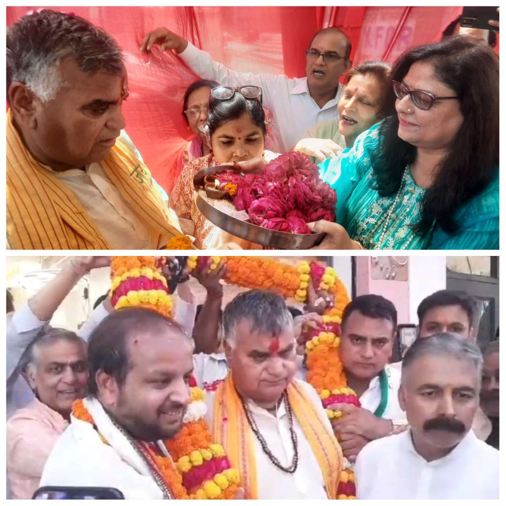 आर्यनगर चौक पर आर्यनगर ब्लॉक अध्यक्ष विकास चंद्रा, वरिष्ठ कांग्रेस नेता रफी खां, मनोज सैनी, सेवादल के महानगर अध्यक्ष और तीर्थ पुरोहित अश्विन कौशिक, त्रिपाल शर्मा, वीरेंद्र भारद्वाज, महेंद्र गुप्ता के संयोजन में कांग्रेस कार्यकर्ता आतिशबाजी के साथ ढोल नगाड़ों पर जमकर थिरके और सतपाल ब्रह्मचारी जी के सांसद बनने की खुशी में एक दूसरे को मिठाई खिलाकर बधाई भी दी। इतना ही नहीं अश्विन कौशिक जी माता जी शिखा शर्मा जी के साथ महिला कांग्रेस की अध्यक्ष लता जोशी, कमलेश शर्मा, कमलेश भारद्वाज, सुमन अग्रवाल, पार्वती नेगी सहित कई महिलाओं ने नवनिर्वाचित सांसद सतपाल ब्रह्मचारी जी की पूजा भी की। आर्यनगर में स्वागत करने वालों में पूर्व जिला महासचिव राकेश शर्मा, मनोज जाटव, समर्थ अग्रवाल, चंद्रपाल, राजेंद्र गुप्ता, अनिल कुमार, तेजस्वी गुप्ता, हरीश शेरी, राजेश शर्मा, कुलदीप कुमार, खतीब खान, जगदीश प्रसाद, रति राम, बच्चन लाल शाह, लक्ष्य भारद्वाज, भूलेराम चौधरी आदि सैकड़ों समर्थकों ने फूल मालाओं से स्वागत किया।