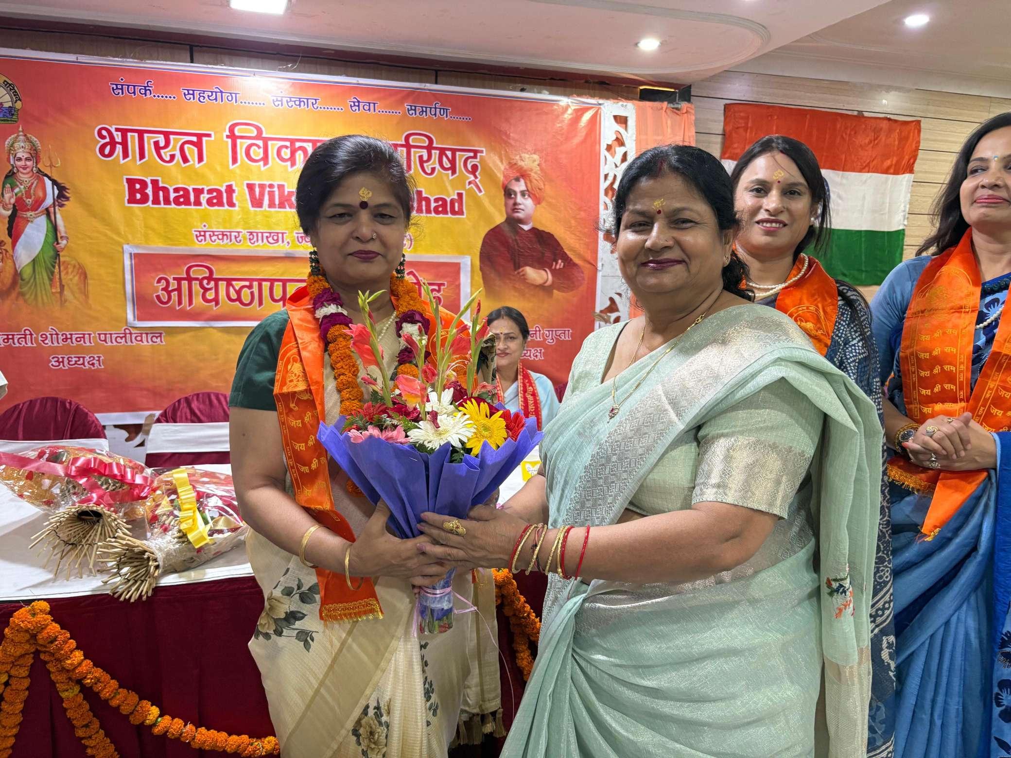 हरिद्वार। भारत विकास परिषद हरिद्वार संस्कार शाखा का अधिष्ठापन समारोह भव्य रूप से संपन्न हुआ। जिसमें परिषद के देहरादून, रुड़की एवं हरिद्वार के सदस्यों पदाधिकारियों के अलावा हरिद्वार के गणमान्य व्यक्तियों ने प्रतिभाग किया। कार्यक्रम में परिषद की प्रदेश अध्यक्ष श्रीमती मनीषा सिंघल एवं सचिव संजय गर्ग ने श्रीमती शोभना पालीवाल को लेपल पिन लगाकर अध्यक्ष पद एवं सचिव श्रीमती नीलम तोमर एवं वित्त सचिव श्रीमती शालिनी गुप्ता सहित सम्पूर्ण कार्य समिति को शपथ दिलाई।