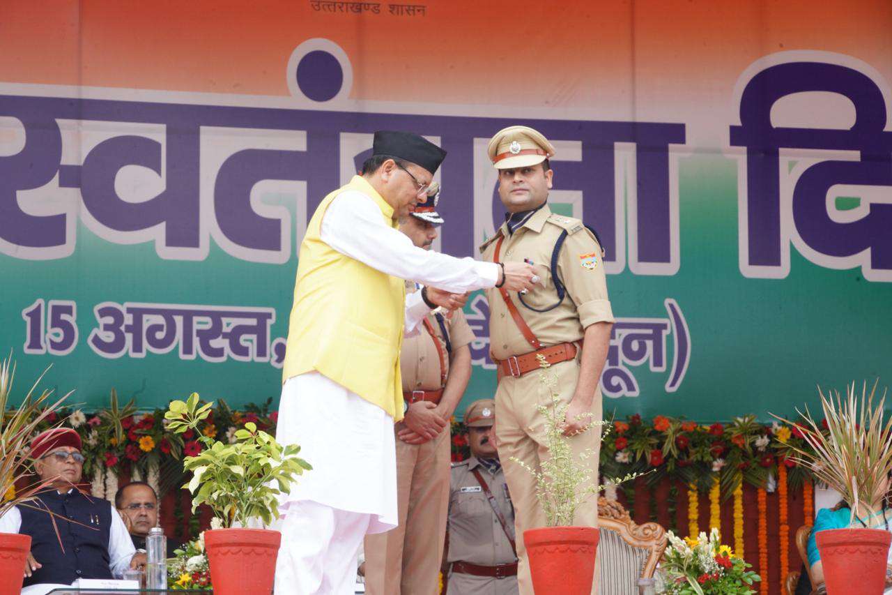 स्वतंत्रता दिवस-2024 के शुभ अवसर पर आज 15 अगस्त 2024 को पुलिस लाईन देहरादून में आयोजित स्वतंत्रता दिवस समारोह में *माननीय मुख्यमन्त्री उत्तराखण्ड, श्री पुष्कर सिंह धामी द्वारा पुलिस अधीक्षक उत्तरकाशी, श्री अर्पण यदुवंशी को विशिष्ट कार्य के लिये “माननीय मुख्यमंत्री सराहनीय सेवा पदक” से सम्मानित किया गया।* यह पुरस्कार उनको उत्कृष्ट एवं विशिष्ट कार्यों के लिये प्रदान किया गया है। *एस0पी0 श्री यदुवंशी द्वारा माह नवम्बर-2023 में यमुनोत्री राष्ट्रीय राजमार्ग पर निर्माणाधीन टनल सिलक्यारा हादसे के दौरान टनल में फंसे 41 मजदूरों को सुरक्षित रेस्क्यू में महत्वपूर्ण भूमिका अदा करने के साथ चारधाम यात्रा-2024 के शुरुआती दिनों में श्री यमुनोत्री एवं गंगोत्री धाम पर श्रृद्धालुओं की बढ़ी अप्रत्याशित भीड व यातायात दबाव को सूझबूझ व दक्षतापूर्ण तरीके से नियन्त्रित करने तथा यात्रा के बेहतर क्रियान्वयन के लिये उनको “माननीय मुख्यमंत्री सराहनीय सेवा पदक” से सम्मानित किया गया है।