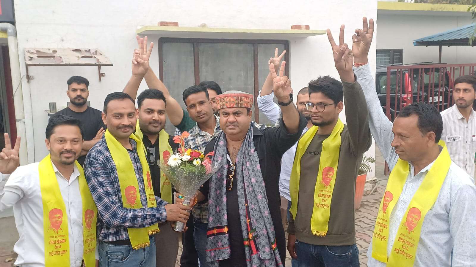 हरिद्वार। निर्दलीय सांसद प्रत्याशी के रूप में जनता विधायक उमेश कुमार का परिवार बढ़ता जा रहा है ऐसे में अब उमेश कुमार का टारगेट भाजपा और कांग्रेस के कार्यकर्ताओं पर है इसी कड़ी में आज उमेश कुमार के समर्थन में कांग्रेस और भाजपा के पदाधिकारीयो ने कांग्रेस और भाजपा छोड़कर अपना समर्थन दिया है। अमित कुमार उर्फ बिट्टू जिला उपाध्यक्ष कांग्रेस ,सागर शर्मा जिला महासचिव युवा कांग्रेस, अजय गुप्ता, ठाकुर उपेंद्र, सोनू शर्मा, सोनीत पूर्व प्रधान आदि के द्वारा कांग्रेस की प्राथमिक सदस्य से इस्तीफा देकर उमेश कुमार को अपना समर्थन देने का काम किया गया है तो वही उमेश कुमार ने भी कांग्रेस के युवा कार्यकर्ताओं को अपने कैंप ऑफिस रुड़की पर स्वागत किया। उमेश कुमार ने भाजपा को भी झटका देते हुए अभिषेक चौहान युवा मंडल अध्यक्ष भाजपा , उप प्रधान डॉ सत्यपाल चौहान बुधवा शहीद , नवनीत चौहान, जोगिंदर चौहान, संदीप सैनी ,सुनील सैनी आदि ने भाजपा के प्राथमिक सदस्य से इस्तीफा देकर उमेश कुमार को अपना समर्थन दिया यही नहीं भाजपा युवा मंडल अध्यक्ष अभिषेक चौहान के द्वारा अपनी गाड़ी पर लगी भाजपा की झंडे को उतार कर उमेश कुमार की झड़ी में तब्दील कर दिया गया।