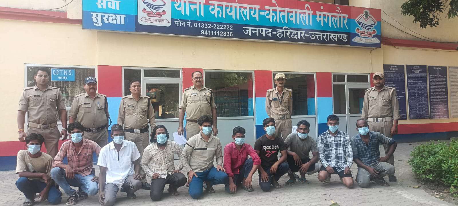 जिसपर मंगलौर पुलिस द्वारा त्वरित कार्रवाई करते हुए आरोपियों की पहचान कर शांति भंग करने के आरोप में 10 व्यक्तियों आरिफ पुत्र अब्दुल हफीज उम्र 36 वर्ष, राहिल पुत्र युसूफ उम्र 18 वर्ष, आश मोहम्मद पुत्र फुरकान उम्र 21 वर्ष, मतलूब पुत्र शकील अहमद उम्र 25 वर्ष, नफीस पुत्र अनीस अहमद उम्र 45 वर्ष, फुरकान पुत्र मेहरबान उम्र 33 वर्ष, उसमान पुत्र शमीम उम्र 26 वर्ष, इमरान पुत्र मेहरबान उम्र 35 वर्ष, अनस पुत्र मोहसीन उम्र 32 वर्ष, अरमान पुत्र इकबाल उम्र 21 वर्ष, समस्त निवासीगण टाडा भनेडा थाना मंगलौर हरिद्वार को हिरासत में लेते हुए 151 सीआरपीसी के तहत कार्यवाही की गई।