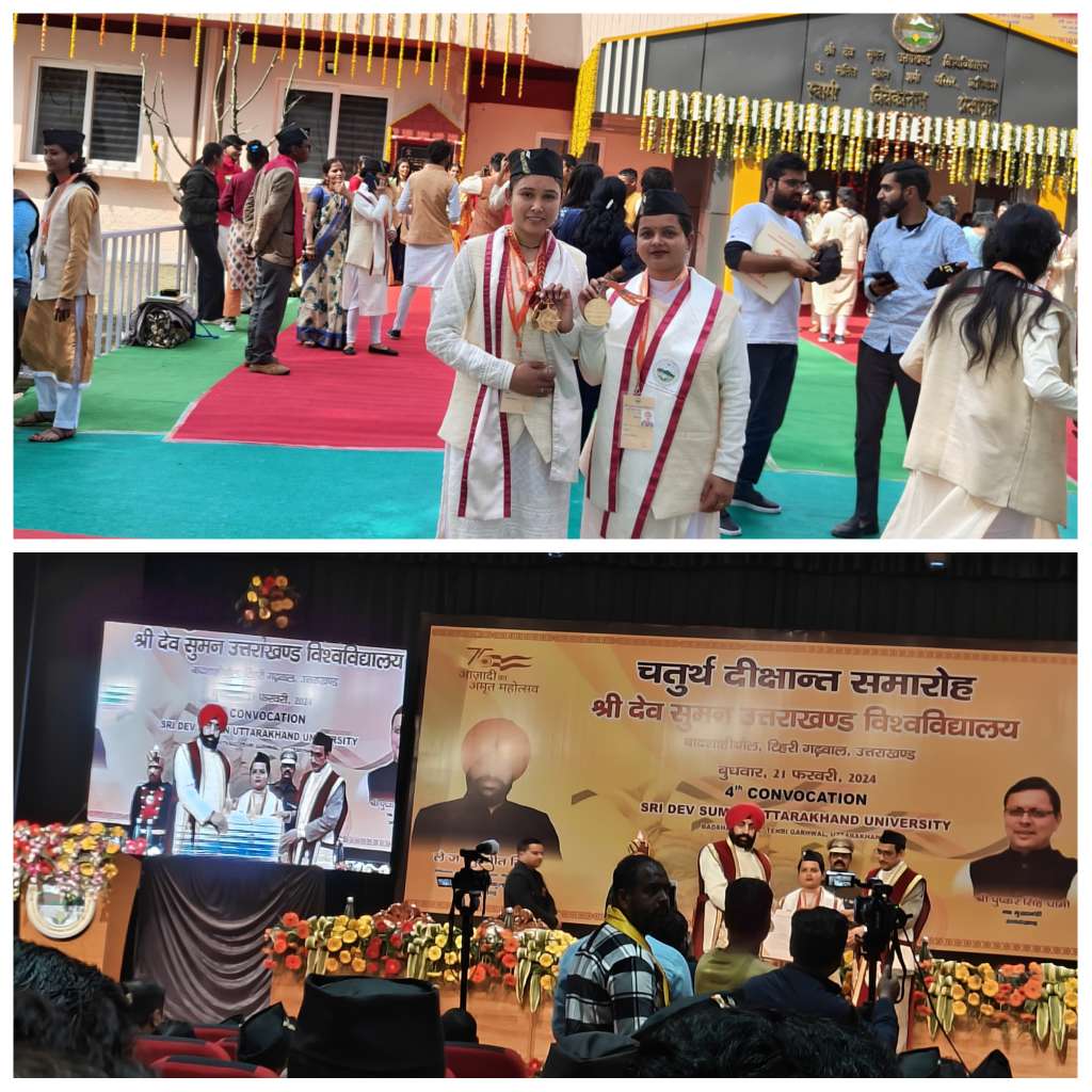 हरिद्वार। श्री देव सुमन विश्वविद्यालय, बादशाहीथौल के चतुर्थ दीक्षांत समारोह में कुंवर प्रभा (पी०जी०) कॉलेज लालढांग, हरिद्वार की दो छात्राओं ने सर्वाधिक अंक प्राप्त कर स्वर्ण पदक प्राप्त किए। ऋषिकेश परिसर में आयोजित चतुर्थ दीक्षांत में चित्रकला विभाग की छात्रा पूजा रावत ने सर्वाधिक अंकों के साथ स्वर्ण पदक प्राप्त किया, साथ ही कुलाधिपति और राज्यपाल लेफ्टिनेंट जनरल गुरमीत सिंह (से.नि.) द्वारा पूजा रावत को कैप्टन सूरवीर सिंह पंवार मेमोरियल स्वर्ण पदक से भी सम्मानित किया गया।