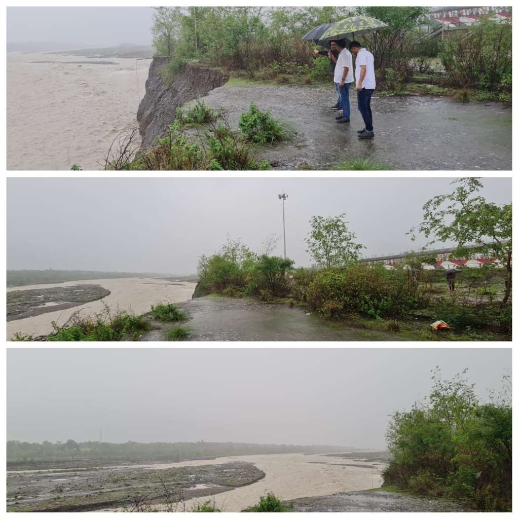 हल्द्वानी। हल्द्वानी में पिछले 48 घंटे से हो रही भारी बरसात और गौला नदी के जलस्तर बढ़ने से क्रिकेट स्टेडियम की तरफ भूकटाव शुरू हो गया है। जानकारी मिलते ही मौके पर सिटी मजिस्ट्रेट ए पी बाजपेई, सहायक खेल निदेशक राशिका सिद्दीकी और तहसीलदार सचिन कुमार ने अधिकारियों सहित मौके का निरीक्षण किया।