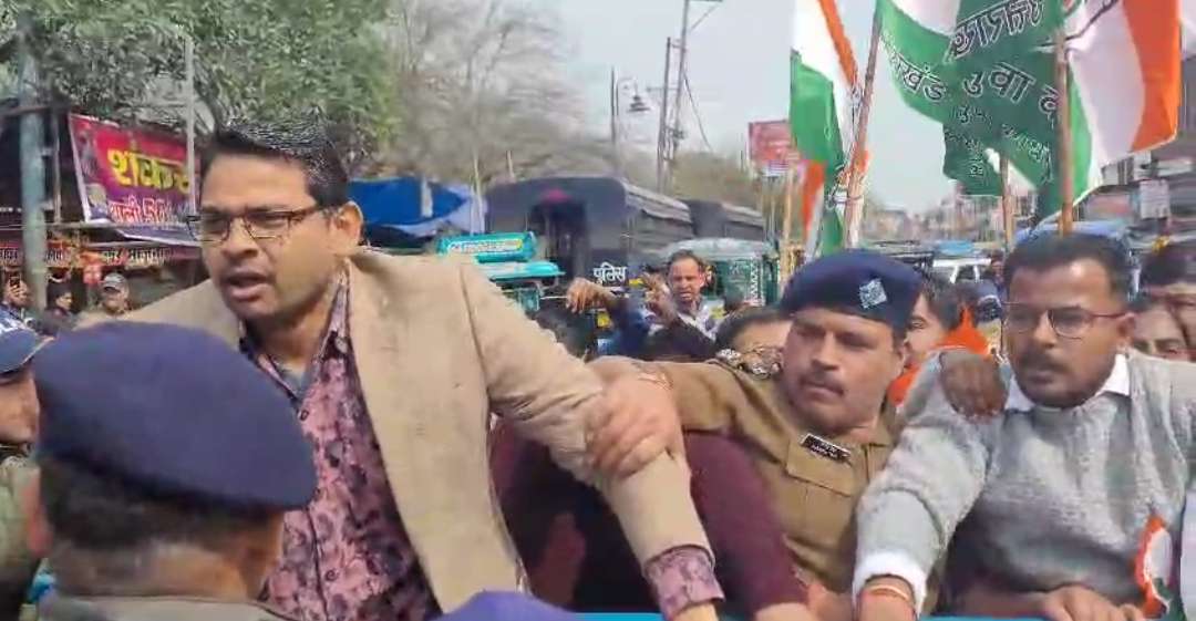 हरिद्वार। युवक कांग्रेस के जिलाध्यक्ष कैश खुराना के नेतृत्व में आज उत्तराखंड के मुख्यमंत्री पुष्कर सिंह धामी के हरिद्वार दौरे पर युवक कांग्रेस के कार्यकर्ताओं ने काली पट्टी बांधकर विरोध प्रदर्शन किया। मुख्यमंत्री के आगमन से पूर्व युवा कांग्रेसी वाल्मीकि चौक/ललतारो पुल पर एकत्र हुए और वहां से विरोध प्रदर्शन कर नारे लगाते हुए शिव मूर्ति चौक तक पहुंच गए जहां पुलिस ने बेरिकेटिंग लगाकर उन्हे गिरफ्तार कर लिया और खड़खड़ी स्थित पुलिस लाइन ले गई, बाद में सभी को छोड़ दिया गया। गिरफ्तारी से पूर्व कार्यकर्ताओं और पुलिस में नोंक झोंक और धक्का मुक्की भी हुई।